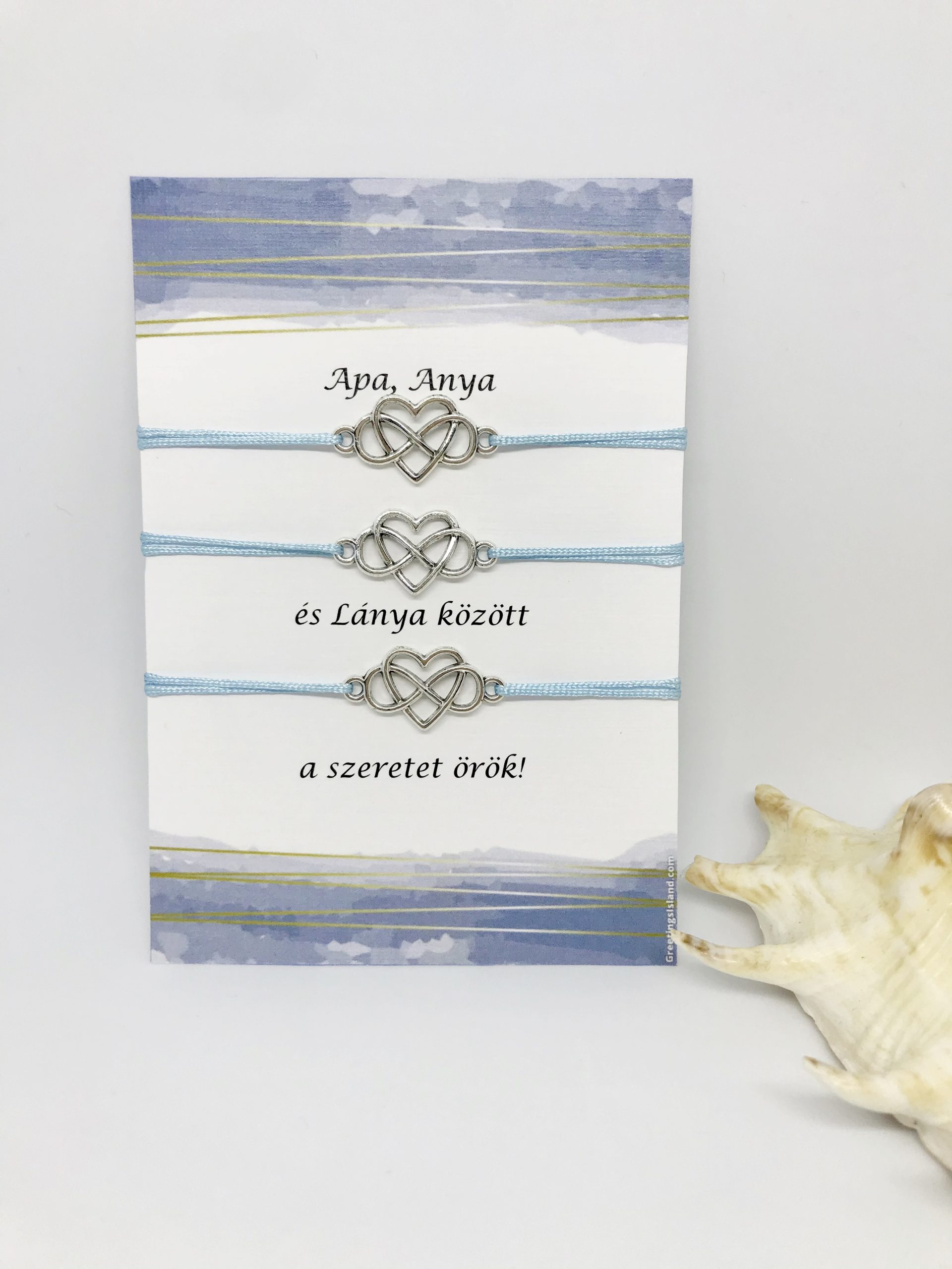 Egyedi elképzelés alapján készített családi karkötő szett! Minimál karkötő lévőn tökéletes lehet a családi szeretet szimbolizálásához.
