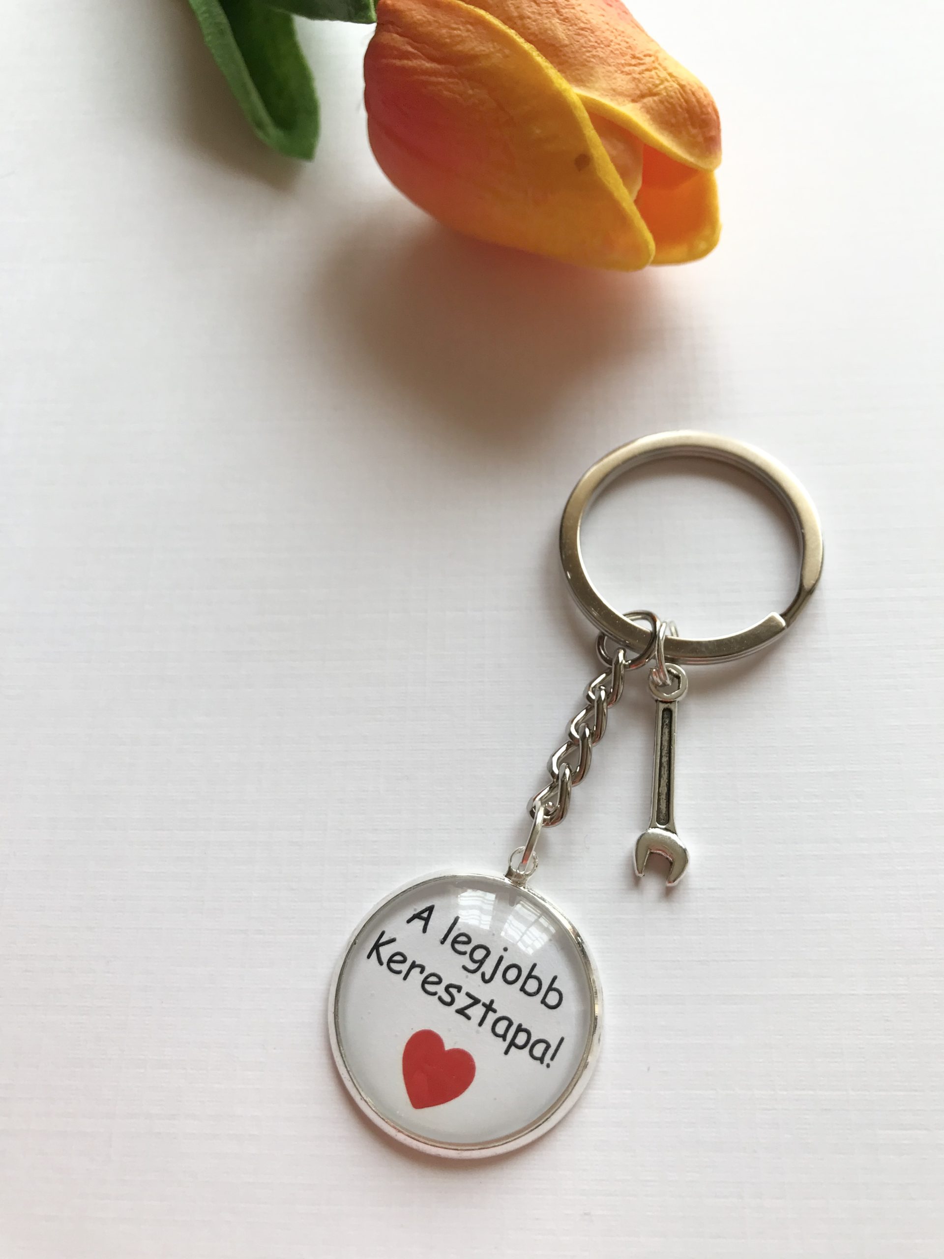 Egyedi design alapján készült feliratos 25mm-es üveglencsés kulcstartó!