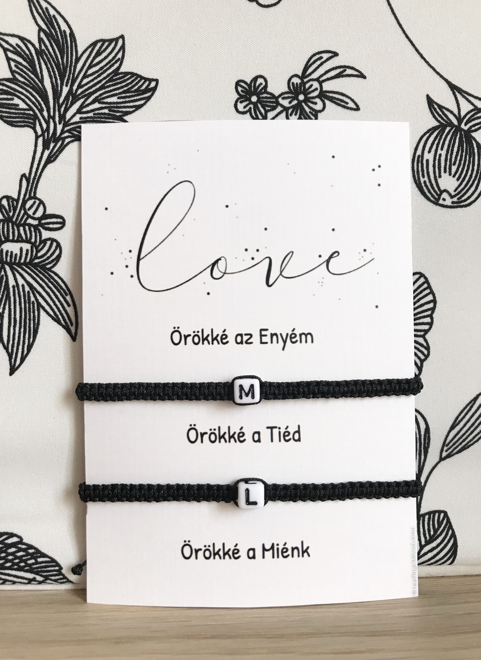 Egyedi design alapján készült monogramos fonott karkötő. Egyedi rendelés esetén a rendelés végén található megjegyzésben tüntesd fel a kezdőbetűket vagy az egyedi feliratot.