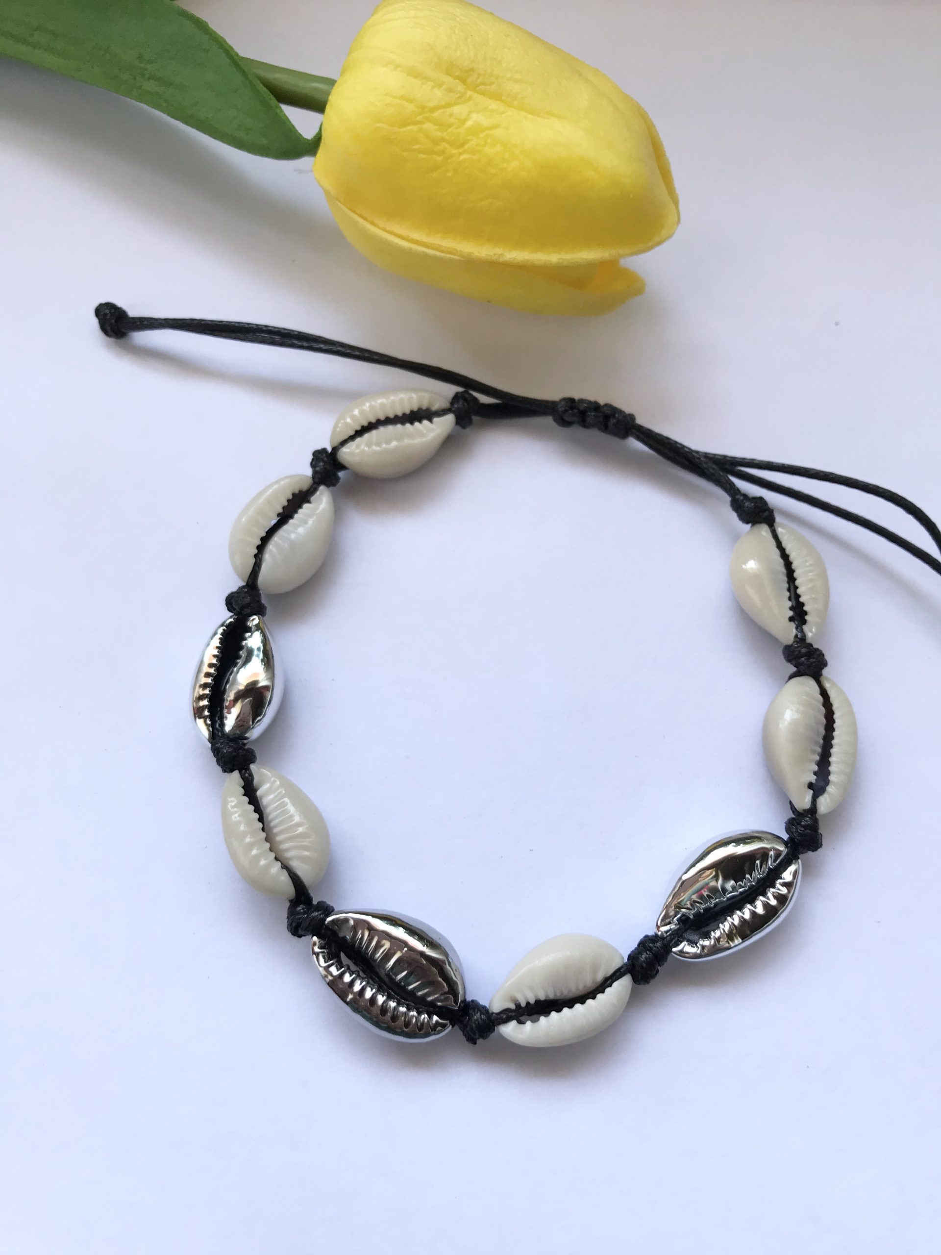 Egyedi desing alapján készült kagylós makramé karkötő.