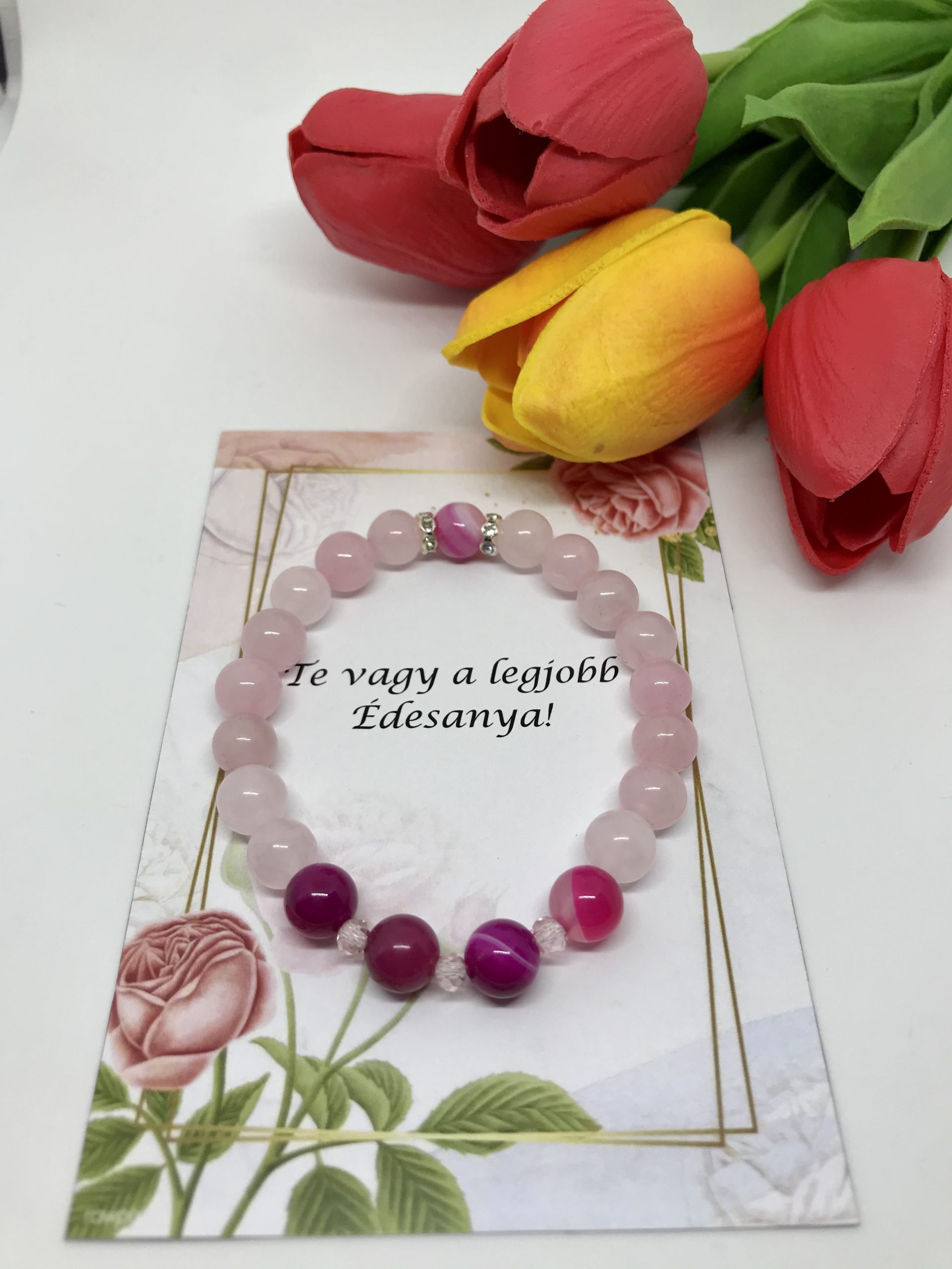 Rózsakvarc: A rózsakvarc, a feltétel nélküli szeretet és a végtelen béke köve. Termékenységfokozó, nyugtató, kommunikációt erősítő, méregtelenítő, vesejavító, vérnyomás stabilizáló és bőrregeneráló. Figyelem! Viselés hatására elszürkülhet, kifehéredhet.